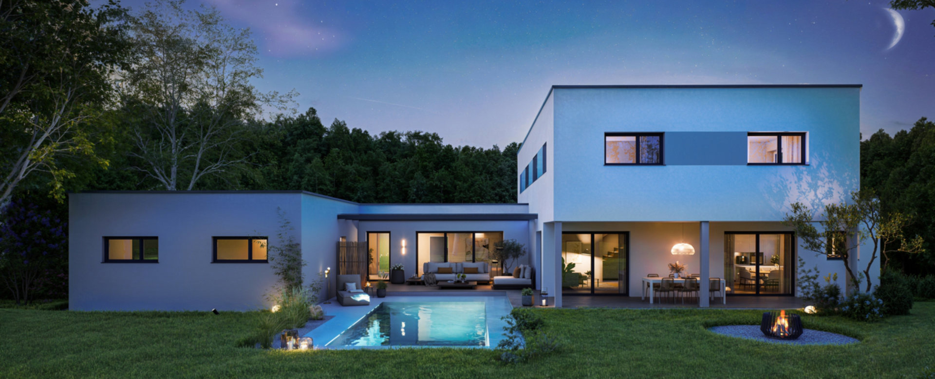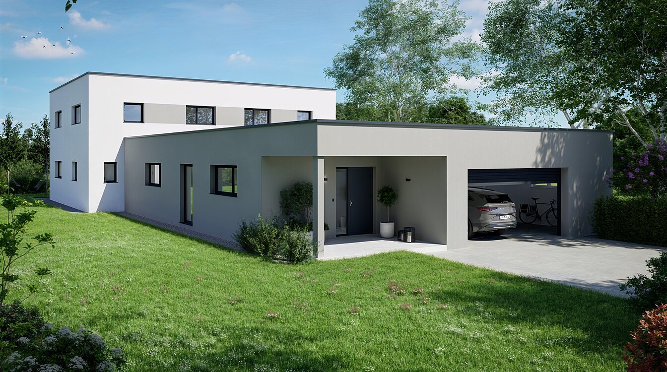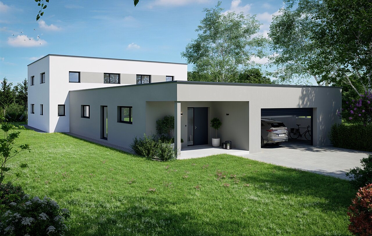 Das moderne Designhaus mit Flachdach präsentiert sich als individuelles Architekturunikat.